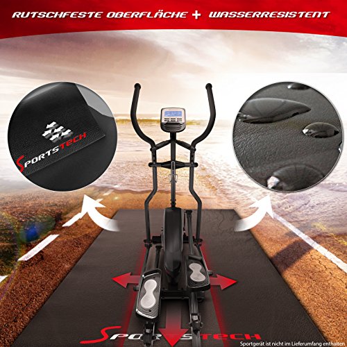 Produktbeschreibung Die SPORTSTECH BODENSCHUTZMATTE Ihr Multifunktionspartner fü r alle sportlichen Angelegenheiten Sie Trainieren gerne zu Hause, besitzen einen Heimtrainer oder andere Gerä te und wollen Ihren Boden schü tzen? Fü r den perfekten Schutz Ihres Bodens sind Sie bei uns genau richtig! Die Bodenschutzmatte von Sportstech schü tzt ideal und verlä sslich, nicht nur wä hrend des Trainings. Lassen Sie Ihre Sportgerä te dauerhaft auf der Bodenschutzmatte verweilen und schü tzen Sie somit Ihren Boden nachhaltig. Fitnessgerä te kö nnen schwer sein und vor allem wä hrend der Trainingsdurchfü hrung verrutschen, Vibrationen auslö sen und unvorhersehbare Bewegungen auf dem Boden auslö sen. Mit der Bodenschutzmatte ist das alles kein Problem mehr. Die spezielle Oberflä che bietet Schutz vor Abdrü cken, Schmutz und Kratzern. Zudem werden Gerä tebewegungen, Vibrationen und dadurch entstandene Gerä usche gedä mpft. Auch das ungewollte Verrutschen Ihres Fitnessgerä tes wird damit verringert. So kö nnen Sie sich Ihrem Training ganz hingeben, denn Ablenkung war gestern. Umfunktioniert zu einer Fitnessmatte bietet die Bodenschutzmatte von Sportstech einen idealen Ort des Yoga-Erlebnisses. Risssicher, wasserabweisend und rutschfest das ist unsere Bodenschutzmatte. Fü r Ihre wohltuenden Yoga-Momente und Ihre taffesten Workouts: Fü r Sie. Lieferumfang 1x Bodenschutzmatte.