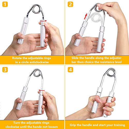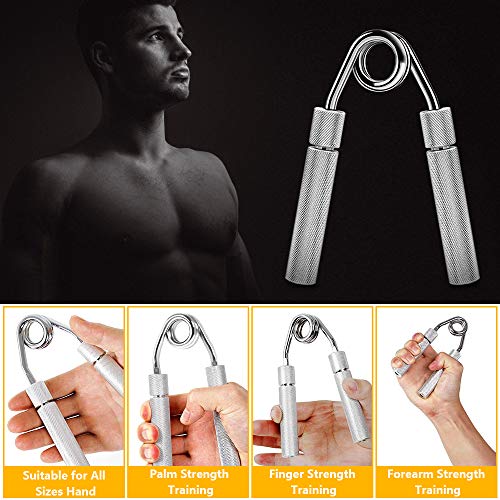 Kohlenstoffstahlfeder und aluminiumgriff, langlebig und robust. Einstellbare Widerstandsstufen, erfüllen unterschiedliche Trainingsbedürfnisse. Ergonomisches, rutschfestes Design für komfortables und sicheres Greifen. Ideal zur Vorbeugung von RSI wie Handermüdung, Arthritis, Überanstrengung usw. Stärkung von Arm, Handgelenk, Unterarmmuskeln, Hand, Finger usw. Spezifikation: