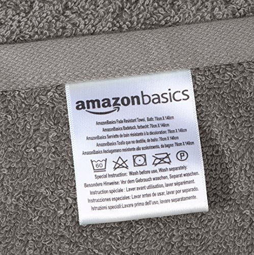 Amazon Basics Handtuch-Set, ausbleichsicher, 2 Badetücher, grau, 100 Prozent Baumwolle 500g/m²