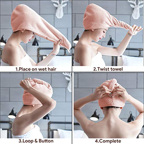 【Praktisch und langlebig】 Diese handtuch haare turban hat einen Knopf und eine Schlaufe auf der Rückseite, die verhindert, dass sie sich löst. Einfach zu bedienen. Für alle Haartypen und -längen geeignet
