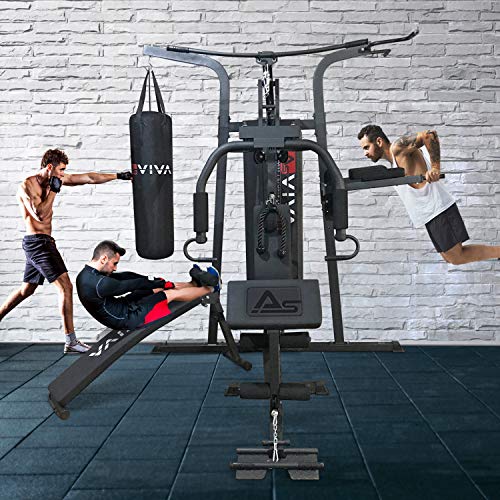 AsVIVA MG6 Kraftstation für Zuhause | Hochwertige Fitnessstation mit Boxsack Bauchtrainer | Multigym mit Seilzug…