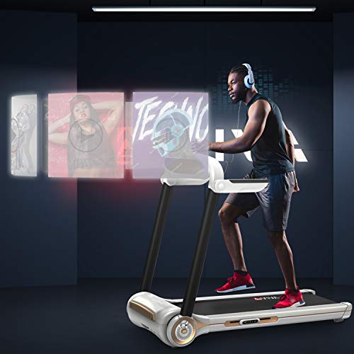 DISPLAY: intelligenter Fitnesscomputer mit Touchscreen sowie LED Funktion, Bluetooth für grenzenlose Unterhaltung wie MP3, Musik und Audio | Musik,- oder MP3 Unterhaltung kann ebenfalls dank der One-Touch-Volumen Tasten für laut oder leise eingestellt werden LEISTUNG: energieeffizienter 3,5PS DC Elektromotor für Geschwindigkeiten bis zu 12km/h | extrem kompakte Bauweise sowie die Safety Lauffläche (L x B) von: 120 x 42cm