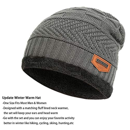 Winter Warme Mütze Beanie Schal Set Wolle Strickmütze Wintermütze und Loop Schal mit Dicke Fleecefutter für Herren und…