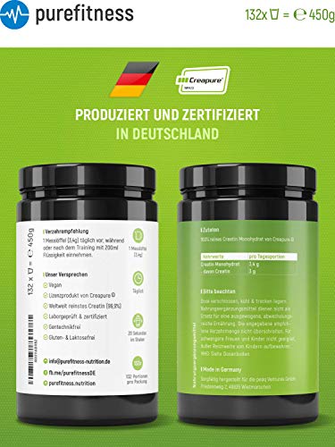 Creatin Creapure Monohydrat Pulver 450g I 99,99% Reinheit I Vegan I Muskelaufbau Pulver I zertifiziert I Kreatin Pulver…