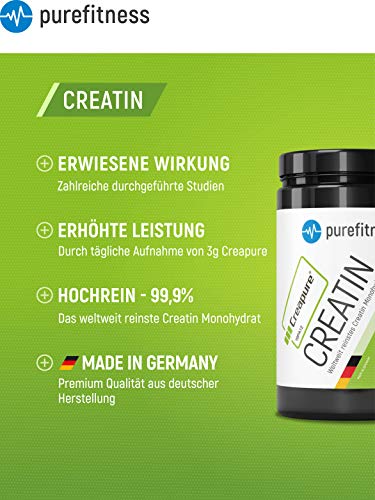 WELTWEIT REINSTES CREATIN MONOHYDRAT: Unser Purefitness Creapure Creatine Pulver weist als Einziges eine Reinheit von 99,9% auf – Somit ohne Zusätze #nobullshit