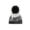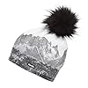 Edle Damen-Strickmütze Mit Speziellem Print- Berglandschaft Kombiniert Mit Schönen Kristallelementen, Mit Kunstfell-Pompon Und Wärmendem Innenfleece