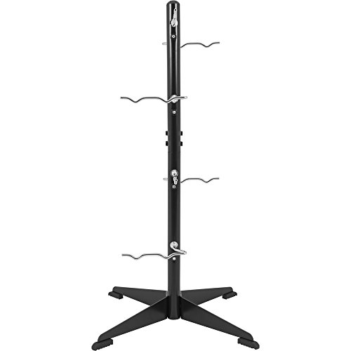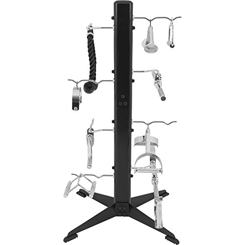 Mit unserer schwarzen Ablagesäule bringst Du Ordnung in dein Krafttraining. Auf 8 Haken passen jeweils 2 von deinen Griffen, Zughilfen oder Zugstangen drauf. Die einzelnen Griffhalter sind entweder gerade oder gebogen und bestehen aus hochwertigem Chrom. Für einen stabilen Halt sorgen die 4 gummierten Standfüße, die auch bei hölzernem Boden für Standfestigkeit sorgen.