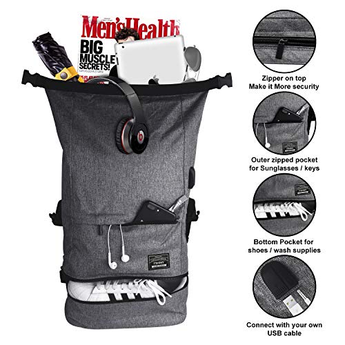 ◆Ansprechendes Design: wasserdichter Design Reiserucksack, mit Fächer zum Trennen von nassen Sachen, mit Reißverschluss, einem Schuhfach, das Schuhe von anderen Produkten, trennt, geeignet für Schuhe, Toilettenartikel, Kleidung; Falten und Schnallenverschluss, ermöglichen eine sichere Aufbewahrung, Gesäßtasche mit Diebstahlsicherung für die Brieftasche oder Telefon, einfach zu verstauen. Die Laptop-Tasche ist abschließbar und erhöht somit die Sicherheit. Die U-förmigen Polster der Brustgur