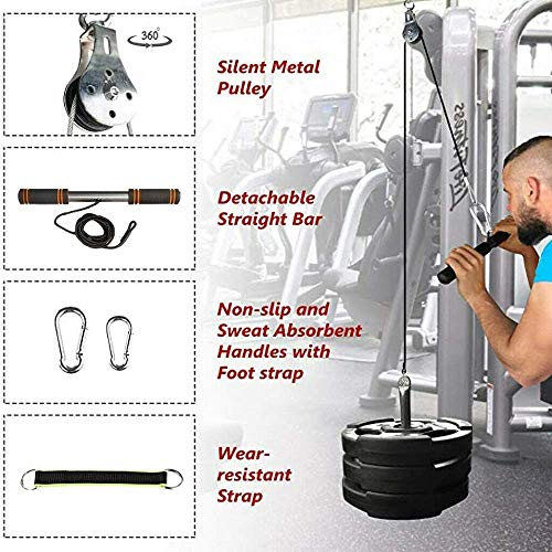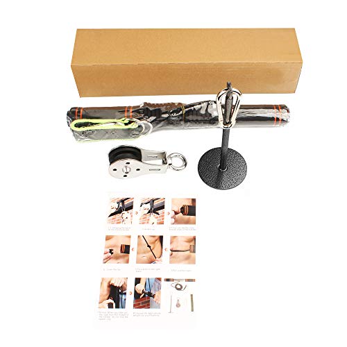 【Einfach einzurichten】 Das Handgelenksrollen-Riemenscheibensystem umfasst 2 Eisenschnallen, eine Hängetasche, einen Griff, ein Nylonseil, einen Klingelrahmen und eine leise Riemenscheibe. Führen Sie einfach den Ladestift durch das mittlere Loch der Hantelscheibe und verbinden Sie die Teile