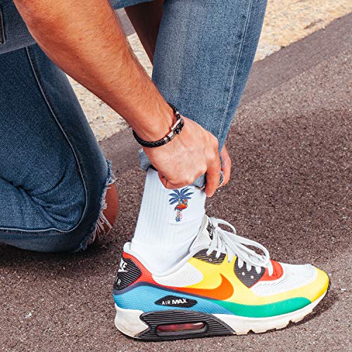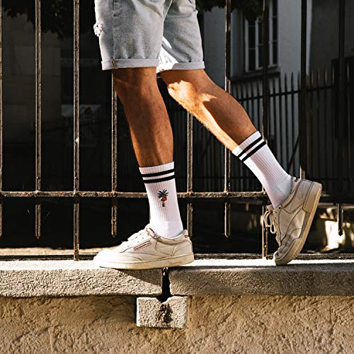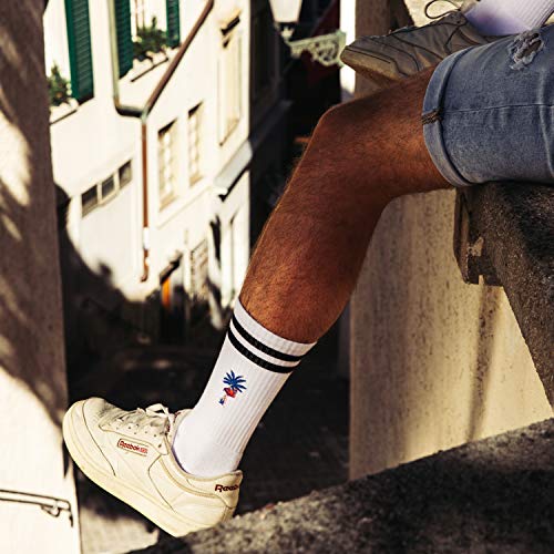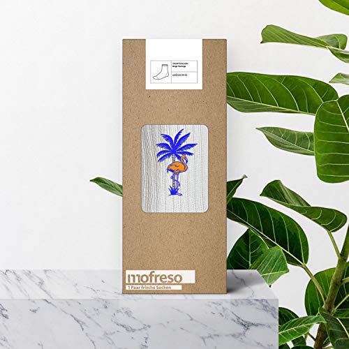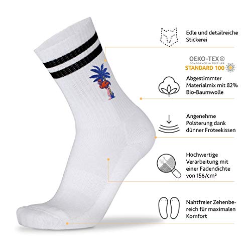 Mofreso Herren & Damen Retro Socken weiss mit Streifen und edler Stickerei – Bingo Flamingo – Baumwolle, fair produziert…