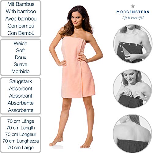 Leichtes Damenkilt von MORGENSTERN in der Farbe Apricot in der Größe 70 x 150 cm mit Knöpfen und Gummizug zur Größenregulierung aus Baumwolle, Mikrofaser und Bambus ist ideal für Sauna oder Wellness