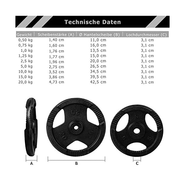 STANDARDNORM: Bohrung 31mm, Gewichte passen somit perfekt auf alle gängigen Kurz-, Lang- und Curl-Hantelstangen mit einem Durchmesser von 30mm