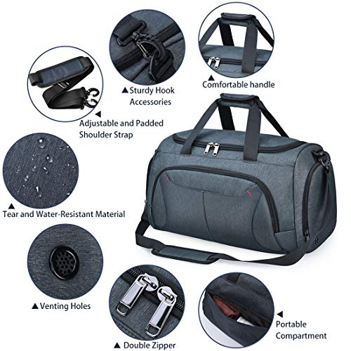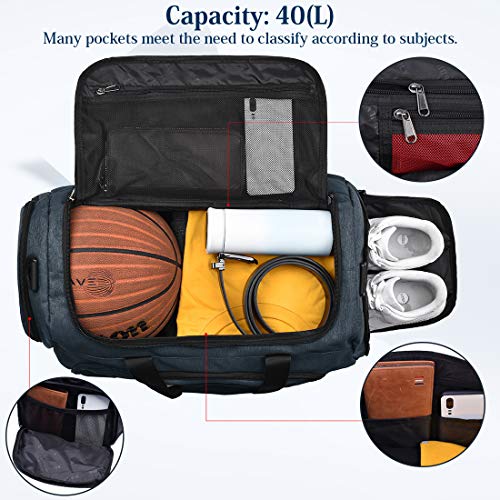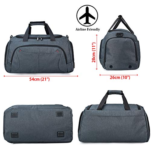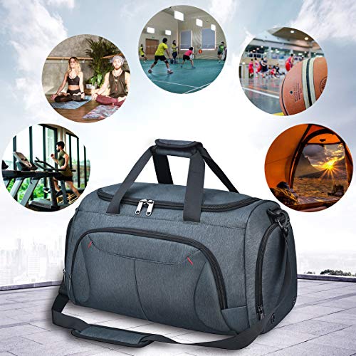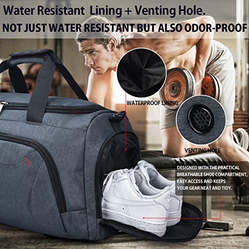 Sporttasche mit Schuhfach – Ein separates Schuhfach mit einem externen Reißverschluss und zwei atmungsaktiven Luftlöchern sorgt dafür, dass die nassen, schmutzigen Schuhe von anderen Gegenständen getrennt werden, speichert Ihre schmutzigen Sportschuhe oder Kleidung und hält nasse und schmutzige Turnschuhe vom Hauptfach getrennt.(Referenz maximale Schuhgröße: 46)