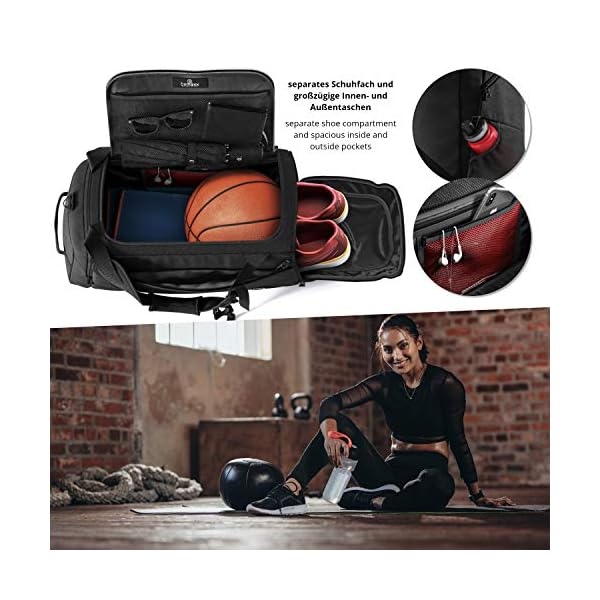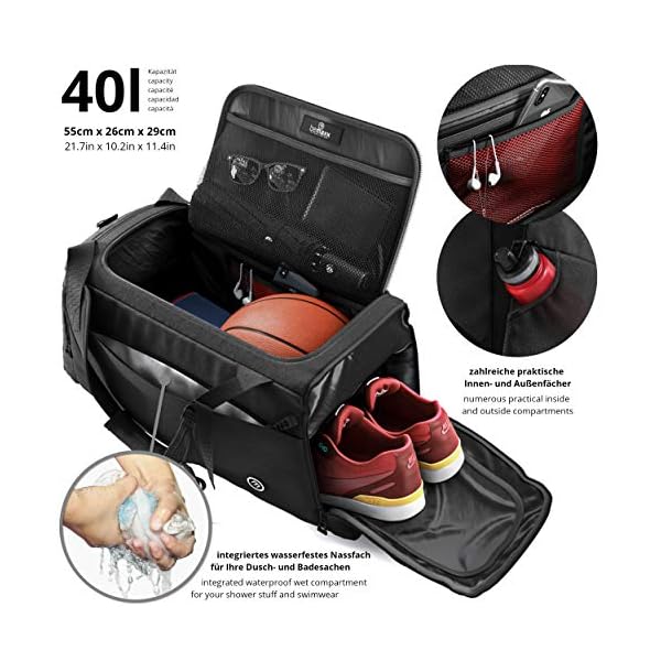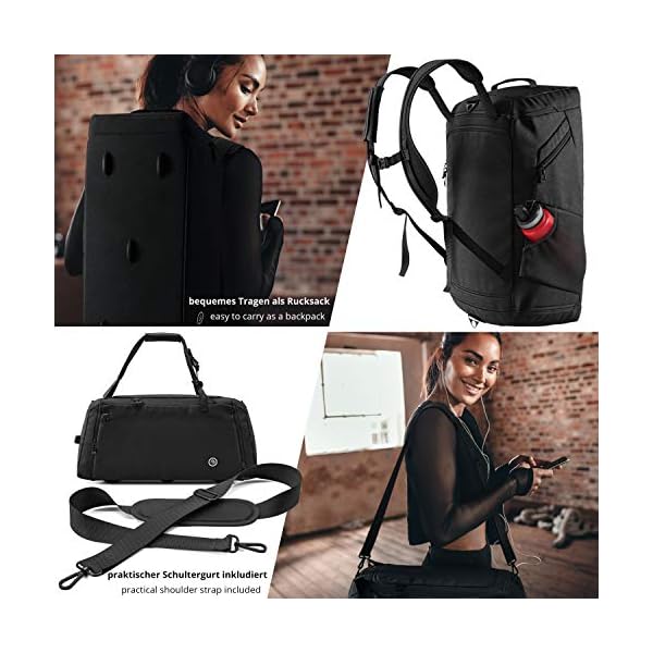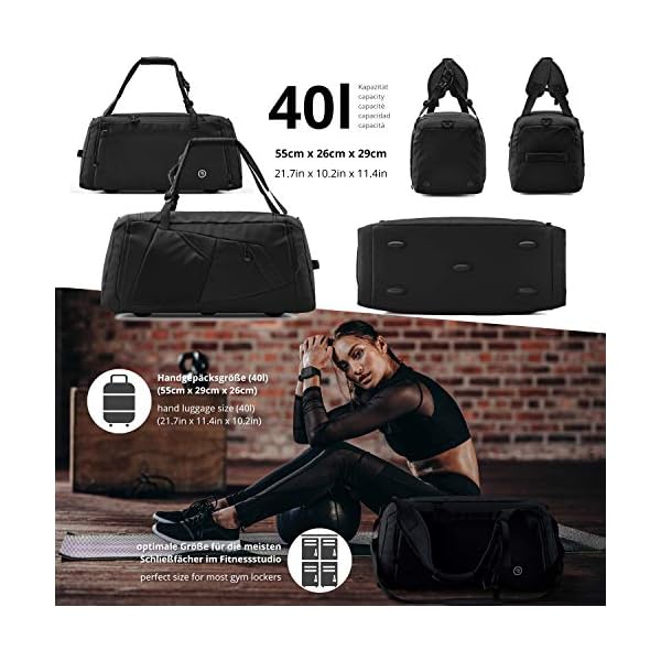 🎒 UNSERE #1 SPORTTASCHE MIT RUCKSACKFUNKTION, EXTRA SCHULTERGURT, SCHUH- & NASSFACH & VIELEM MEHR: Die Vielzahl an Fächern garantiert maximalen Komfort; inkl. großem Fach für Schuhe mit atmungsaktiven Luftlöchern, Netzfach an der Seite für Trinkflaschen, einem wasserundurchlässigen Nassfach, für Badehose, Handtuch etc., XXL Hauptfach sowie einem Netzfach für Handy, Schlüssel, Brieftasche, etc.! HANDGEPÄCK-Maße: 55cm x 26cm x 29cm (40 Liter).