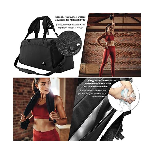 Sporttasche Trainingstasche + Rucksack-Funktion, Schuhfach, Nassfach | 40L Reisetasche Schwimmtasche Fitnesstasche Sport…