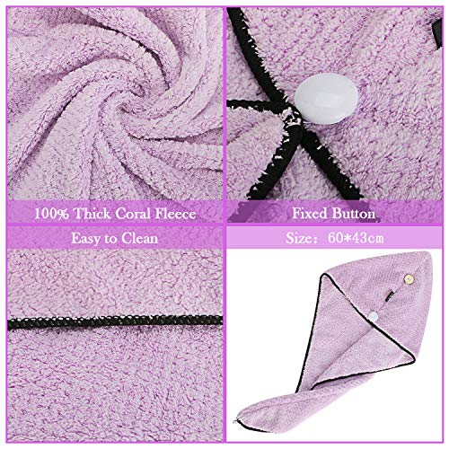 PREMIUM QUALITÄT UND DRAHTLOSES MATERIAL – Tencoz Handtuch Kopftuch are made of 100% thick coral fleece, which can withstand the wear and tears of everyday use. The size of 60*43cm for all types of hair, it’s more durable, supple and more absorbent than other towels with a fixed button to prevent the towel from slipping.