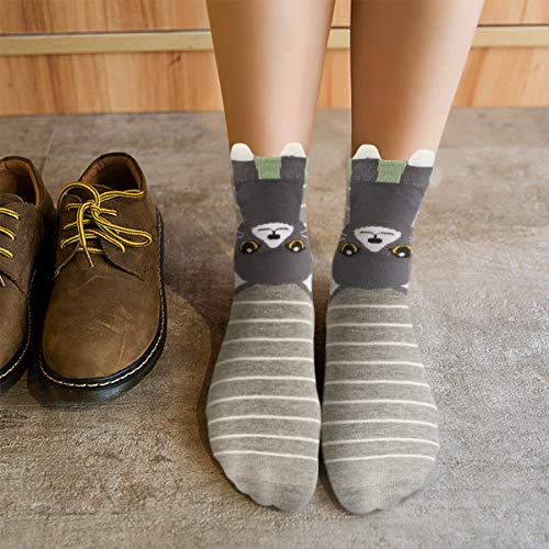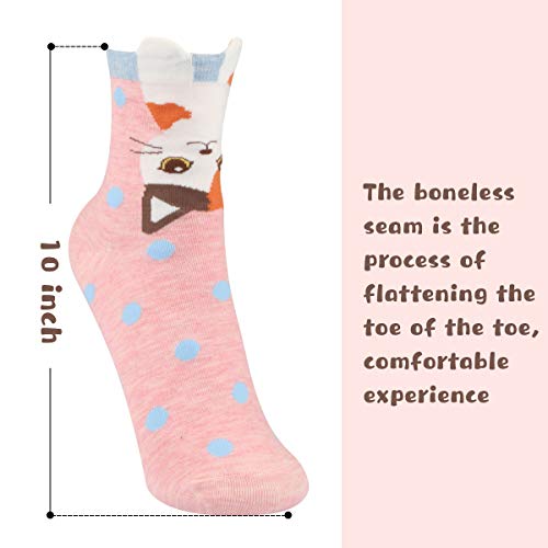 WOSTOO Damen Socken, 6 Paar Socken Damen süße Interessante Tier Charakter Katze Funny Crew Socken,one size
