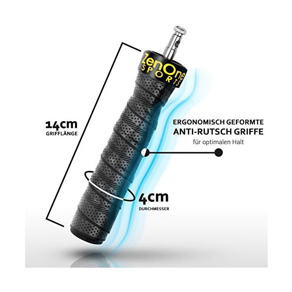 𝗛𝗢𝗖𝗛𝗪𝗘𝗥𝗧𝗜𝗚𝗘 𝗚𝗥𝗜𝗙𝗙𝗘 & 𝗥𝗨𝗧𝗦𝗖𝗛𝗙𝗘𝗦𝗧𝗘𝗦 𝗚𝗥𝗜𝗣-𝗕𝗔𝗡𝗗: Seilspringen ist ein sehr effektives Ganzkörperworkout – bei dem das rutschfeste Grip-Band an den Griffen selbst bei schweißtreibendem Training perfekten Halt bietet.