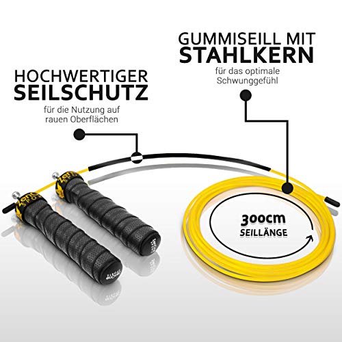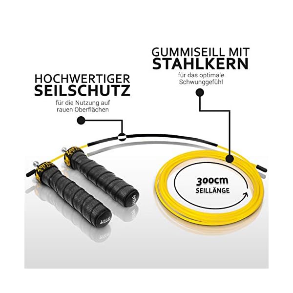 𝗟𝗘𝗜𝗖𝗛𝗧𝗚Ä𝗡𝗚𝗜𝗚𝗘 𝗞𝗨𝗚𝗘𝗟𝗟𝗔𝗚𝗘𝗥 𝗙Ü𝗥 𝗠𝗔𝗫𝗜𝗠𝗔𝗟𝗘𝗡 𝗦𝗣𝗘𝗘𝗗: Mit dem Jump Rope verbesserst Du Deine Koordination, Kraft und Ausdauer und bringst Deine Fettverbrennung mit unserem derzeit schnellsten High Speed Seil so richtig in Schwung.