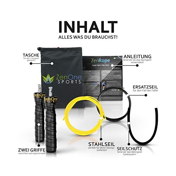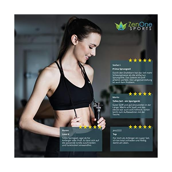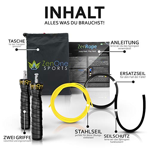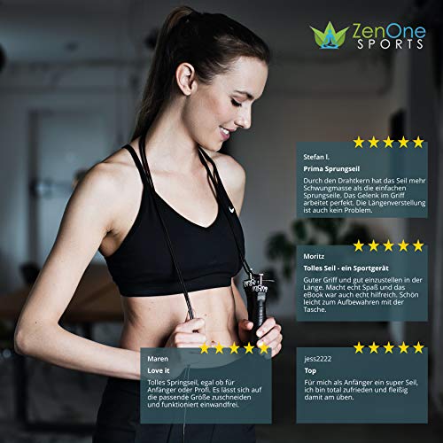 ZenRope Springseil, Speed Rope mit Kugellager, professionelles Sprungseil für Erwachsene, längenverstellbar, inkl. Extra…